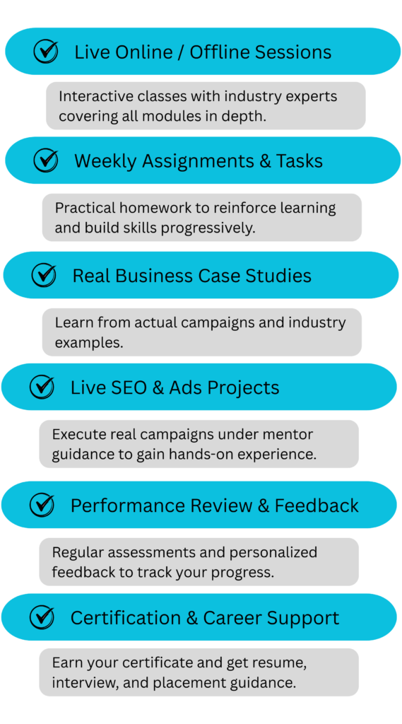 Execute real campaigns under mentor guidance to gain hands-on experience.